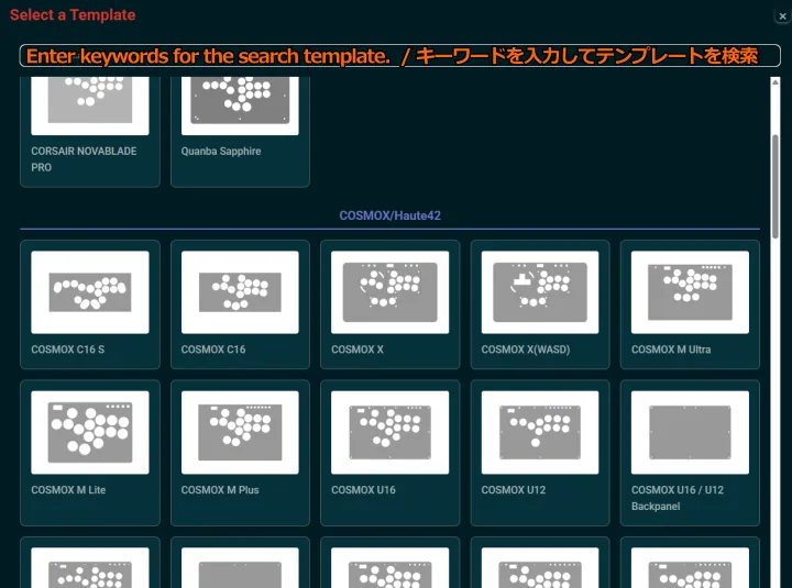 Click the [ Select Template] button on the right to display a list of available arcade controller templates.
