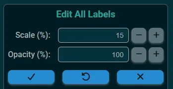 - Opacity(%): Specifies the opacity for all button labels (0%: transparent - 100%: opaque).