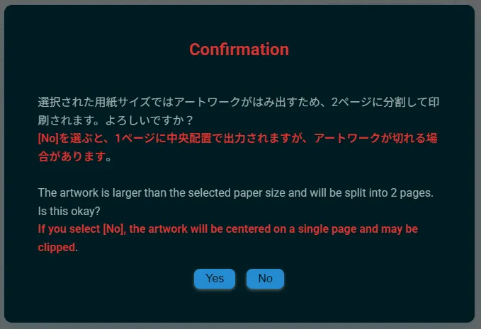 - [No]: The PDF will be forcibly output on a single page. The template may extend beyond the printable area.